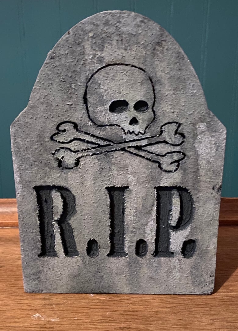 "RIP Skull and Crossbones" tombstone decoration for desk$25.00 -